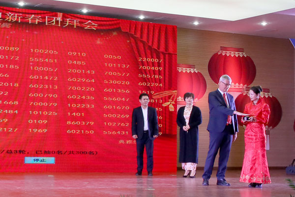 為(wéi)了感謝廣大(dà)員(yuán)工過去一年對企(qǐ)業的(de)付出,團(tuán)拜會還為大家(jiā)準備了豐厚的獎品,共有1060名員工獲獎,獲獎率高達30%以上。