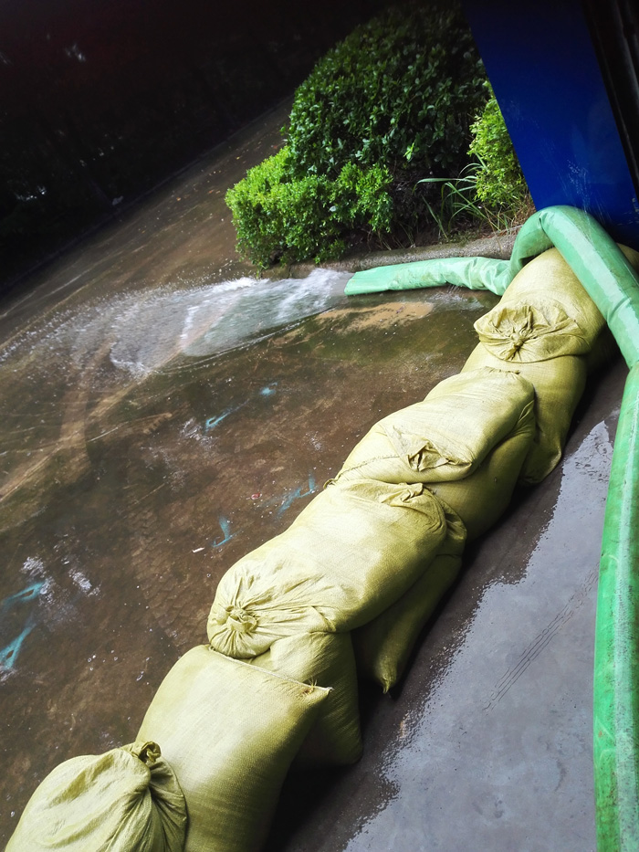 “運河水(shuǐ)位離碼頭最低處還有4公分!”每年老廠區是遭遇洪澇災害的重點部位,在連日大雨的侵襲下,7月3日中(zhōng)午,老廠碼頭水位漲至(zhì)今(jīn)年最高。十多名員工迅速(sù)將黃沙裝袋,堵住離河岸最近(jìn)的開平車間的兩個大門,以(yǐ)防水患。隨著雨勢漸弱,水位不再上升,至今晨4點,水位已有明顯下降。800av凹凸视频在线观看碼頭度過該次險情。此外,老廠區的風電塔筒車間積水較嚴重,但參與防汛抗災的員工及時排水,車間內電纜等設施設備未受到嚴重影響。