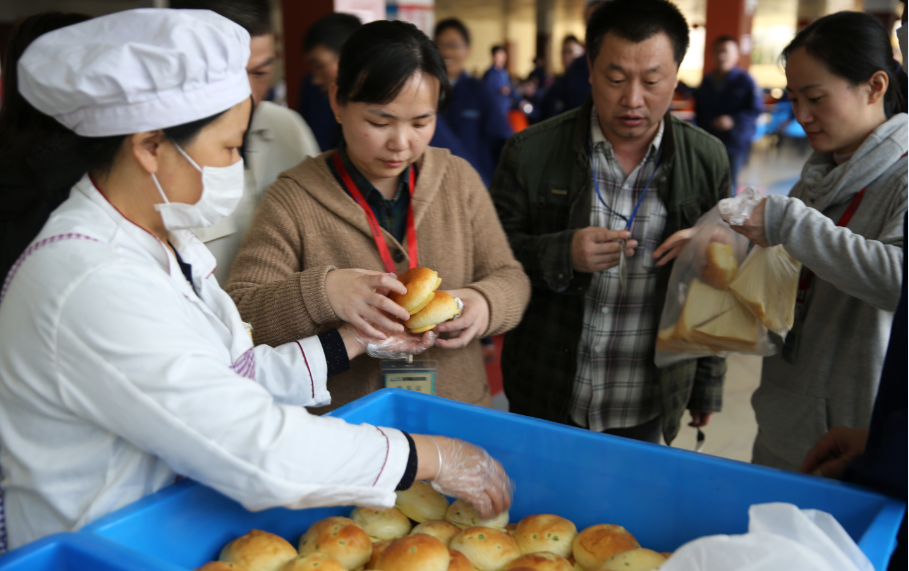 在集團黨(dǎng)委的要求和行政的支持下,通過招(zhāo)聘專業點心師、購置各類設備和原料、規劃計算數量等一係列籌備工作,西點(diǎn)於11月2日正式出爐,果不(bú)其然大受歡(huān)迎,窗口排起長龍。“我要肉鬆麵包和三角蛋(dàn)糕!”“你不是減肥嗎?怎麽吃那(nà)麽多(duō)?”“好吃啊,吃飽了(le)再減!”嘻嘻哈哈的歡(huān)笑聲(shēng)中,表現出(chū)來的是職工內心(xīn)對食堂午餐的滿意,更是對集(jí)團服務員工的肯定和讚許。
